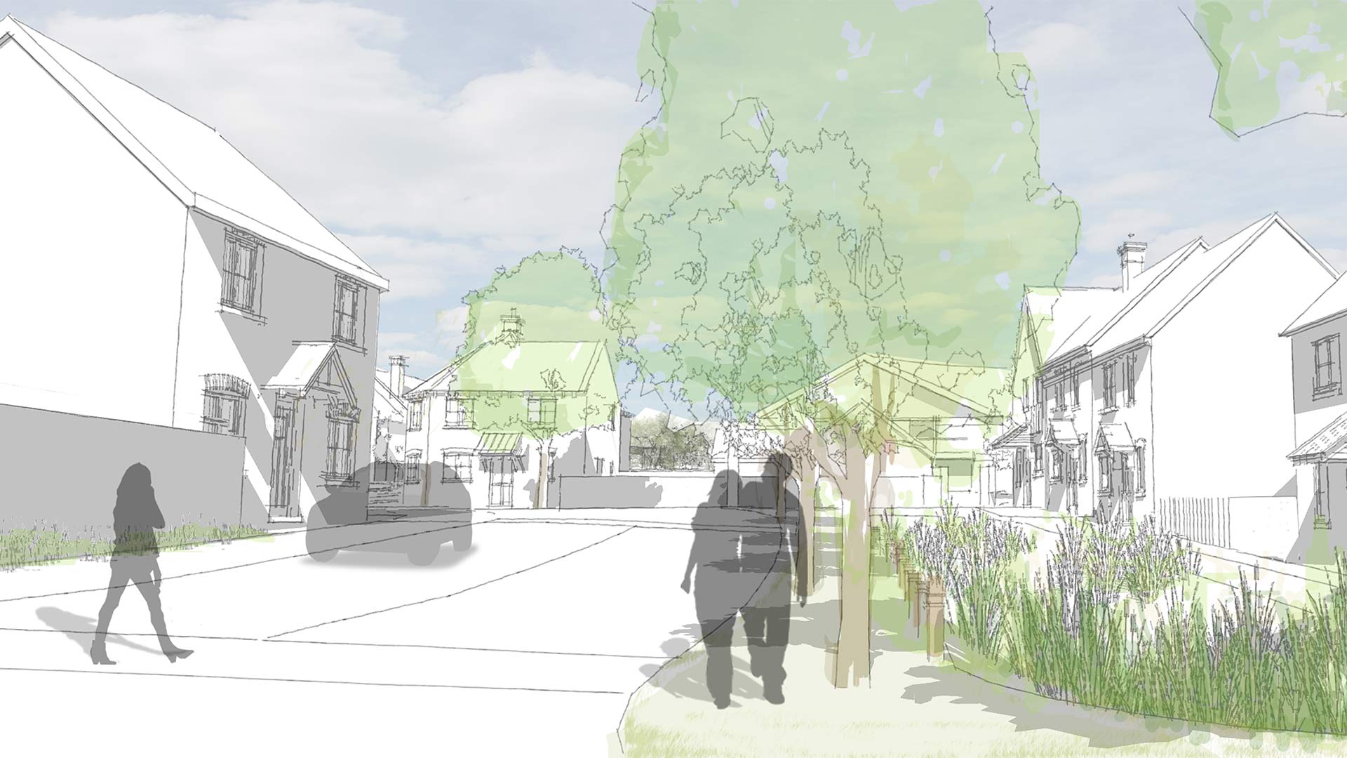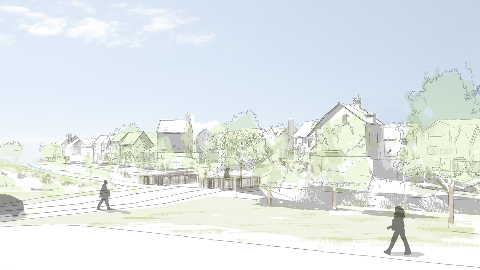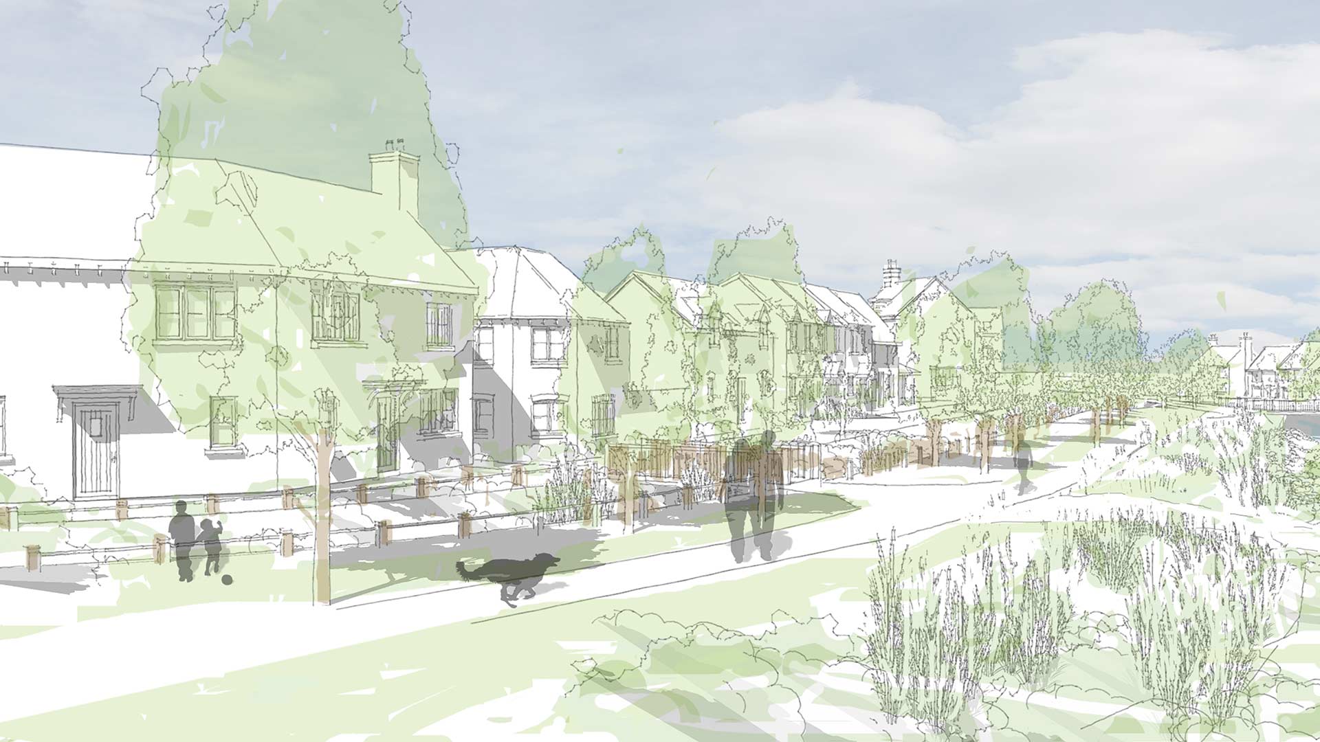 Running through the centre of the development, the historic smugglers route of Cockles Lane has been replanted with significant new tree planting as many of the previous trees were removed due to Ash Dieback. This informal tree lined pedestrian and cycle route links each side of the site and provides an accessible link across the site.