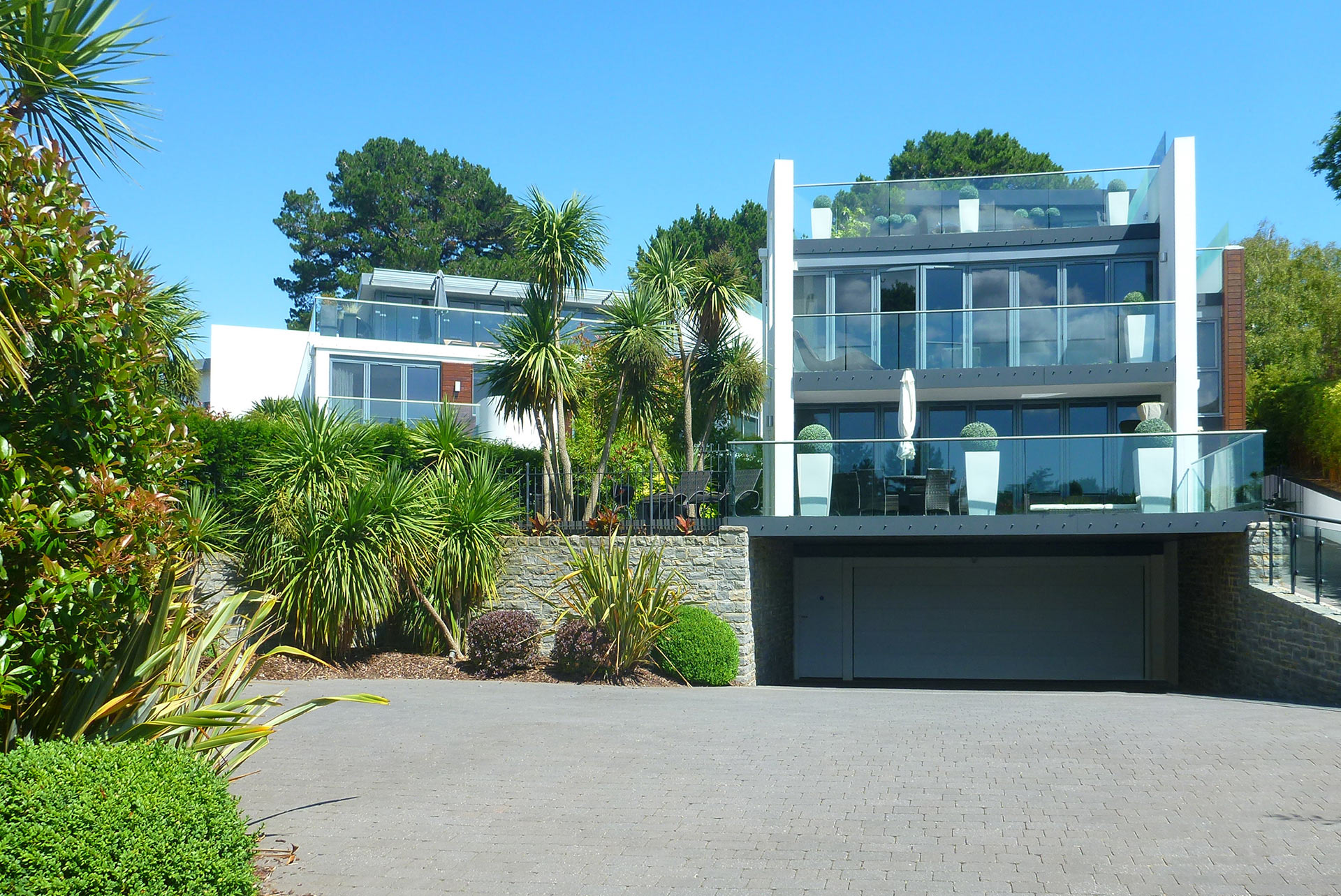 This award winning house was designed to maximise the views over Poole harbour from its vantage point in Brudenell Avenue. The diverse materials palette includes white render, timber clad walls, zinc solar roof and structural glass balustrades.