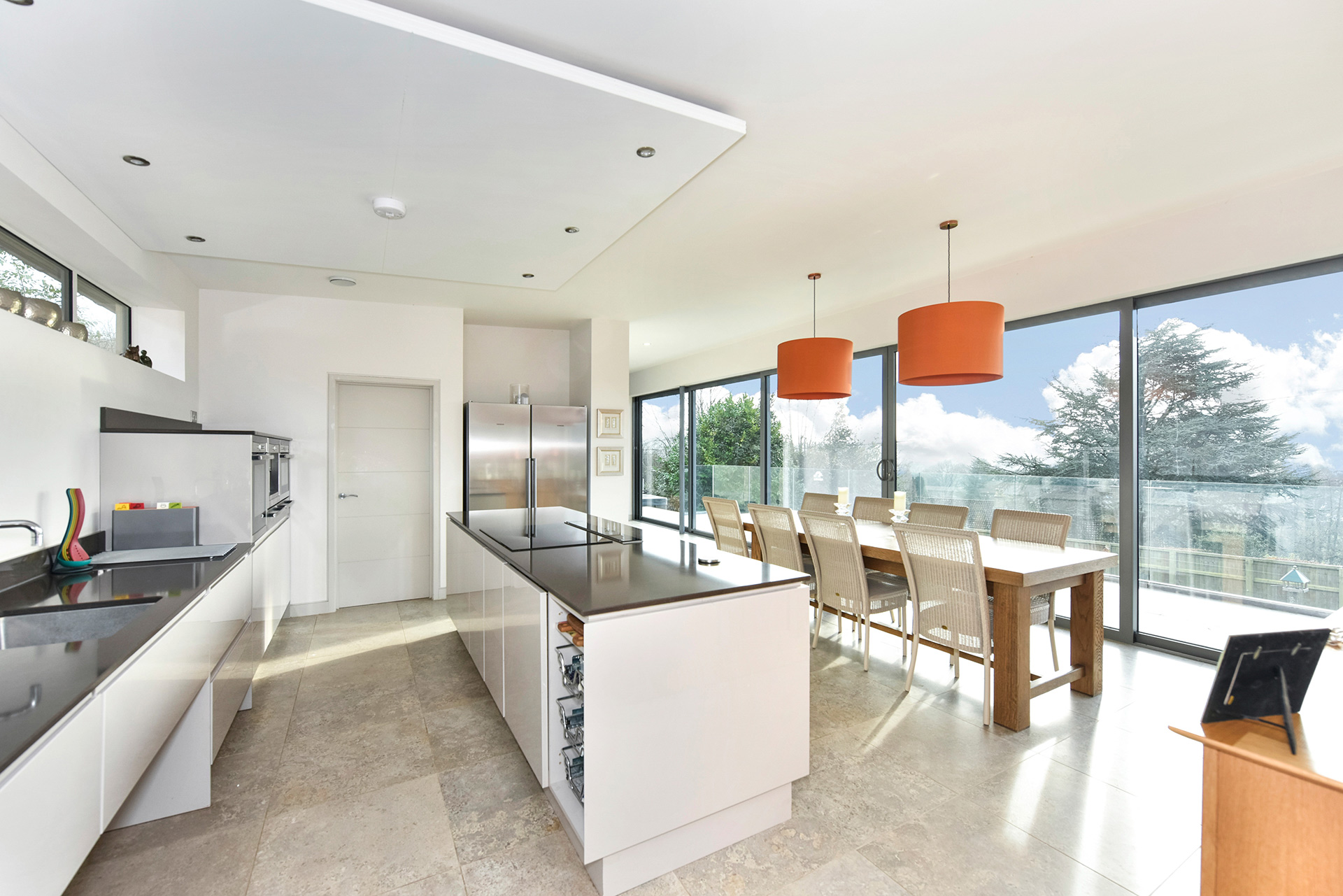 This new contemporary home features open plan living with landscaped views from its elevated setting on the building plot.