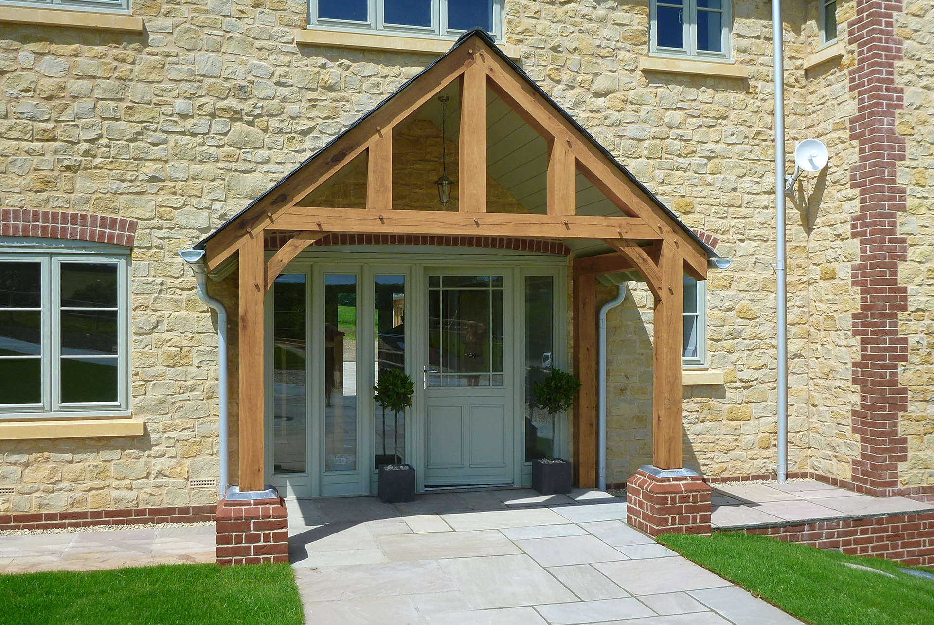 The house, nestling into its sloping site is laid out to take advantage of stunning panoramic distant views. The green oak framed glazed kitchen extension, and the L shaped enclosed courtyard provides year round sun and views.